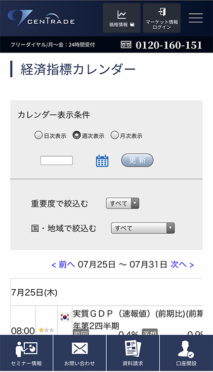 画面下部の【その他】メニューをタップし、【経済指標カレンダー】を選択するとWebサイトが表示されます。