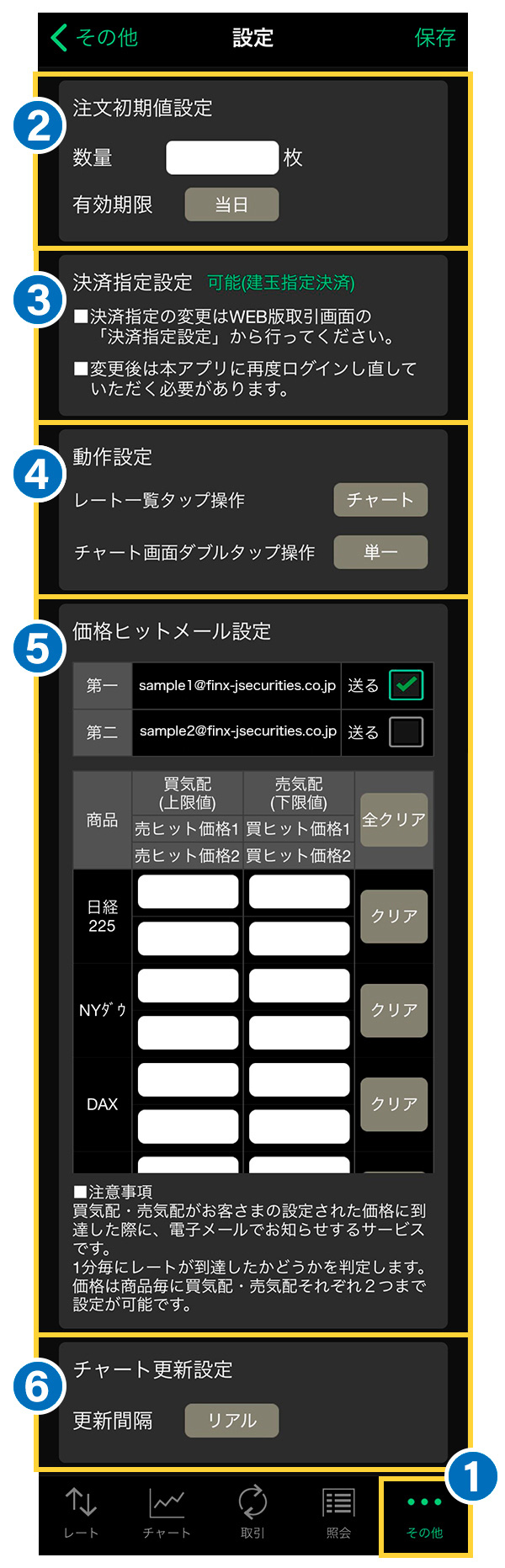 お客様の設定した価格に到達した際にメールでお知らせするサービスです。 - (6)チャート更新設定
